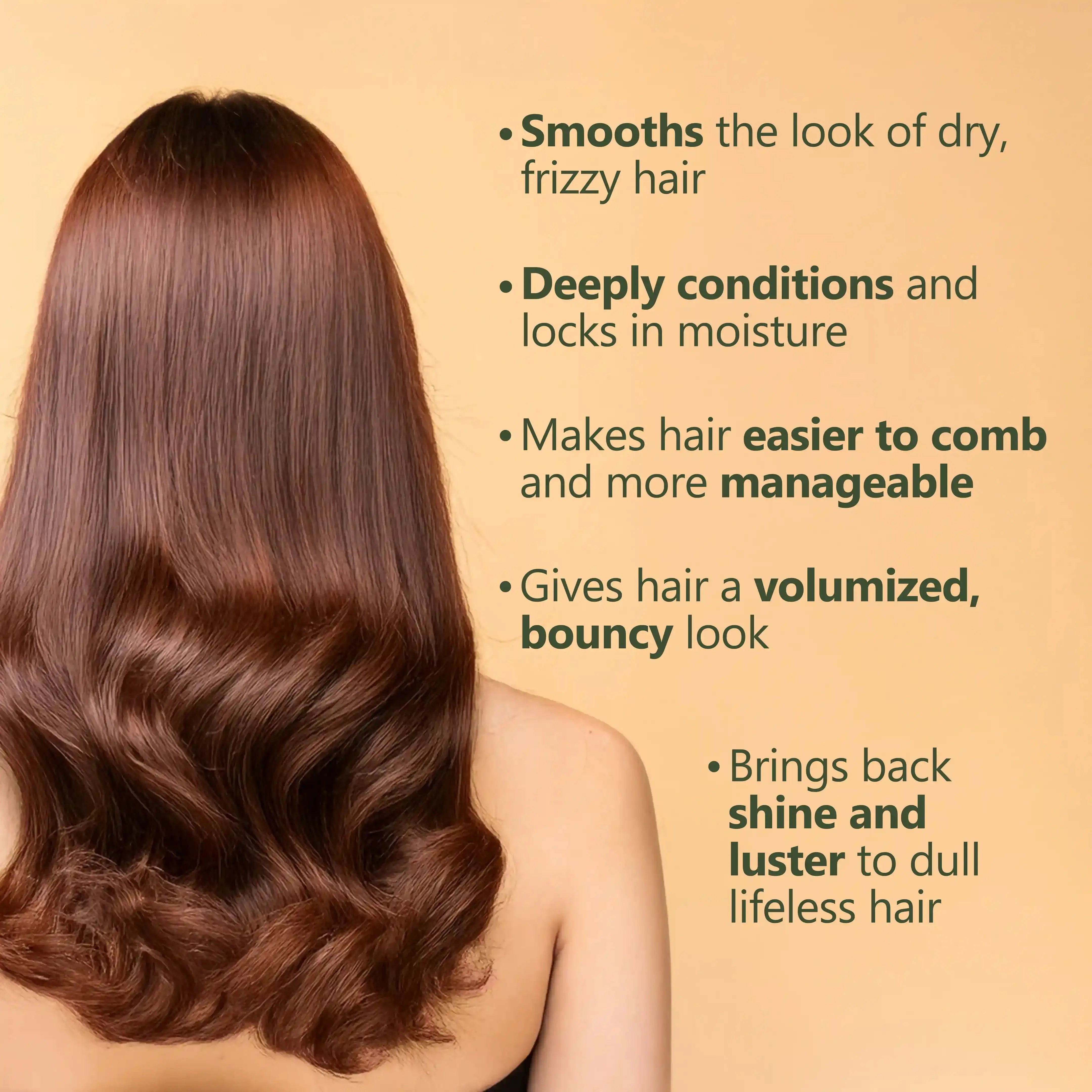 • Gives a well-deserved ‘bouncy’ makeover to those rough, dry hair, frizzy hair prone to breakage and thinning